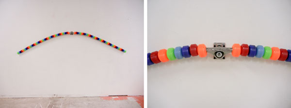 Jared Steffensen uses actions, objects, and the residual marks created by the act of skateboarding, that are central to its practice, and translating them into a visual language that is specific to contemporary art. He also incorporates an important aspect of skateboarding, the ability see the potential of objects, that serve a specific function in ordinary day to day life, to exist beyond their intended function (i.e. handrails, transitioned embankments, curbs, etc.). He further adapts these actions, objects and marks to facilitate their existence in a gallery setting.